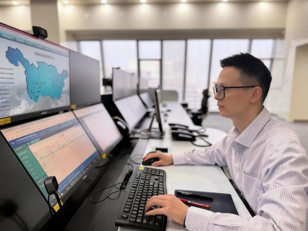 ▲三峽梯調(diào)員工使用基于智慧集控技術(shù)的管理系統(tǒng)