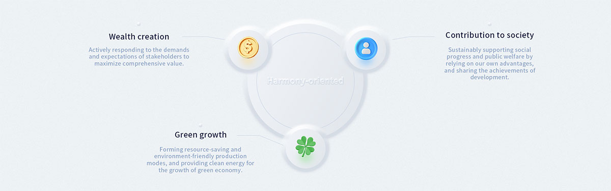We adhere to our social responsibility philosophy of "Harmony and wealth creation, dedication to society and green growth" by establishing and perfecting the social responsibility organization system with the company’s social responsibilty leadership group as the core, and mobilizing employees and business partners from supply chains to fullfill our social responsibilities, thus creating a cultural environment and a pattern with CYPC's characteristics to undertake our responsibilities.